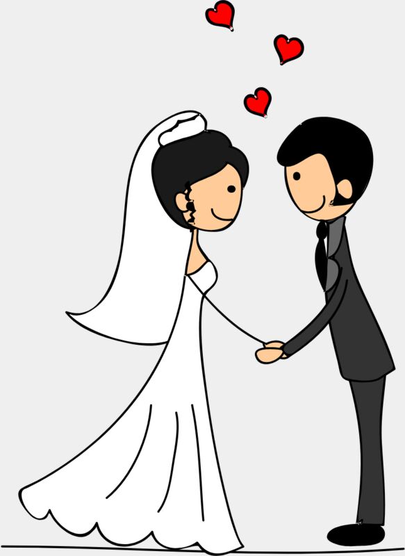 Cartoon Wedding Groom Bride Holding Hands 8