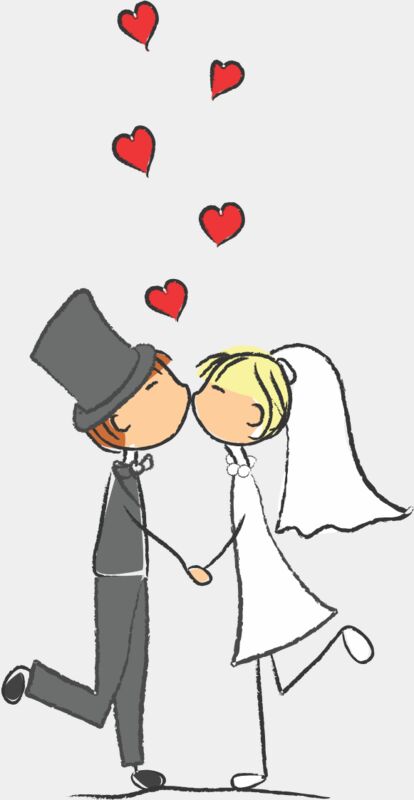Cartoon Wedding Groom Bride Kiss 1
