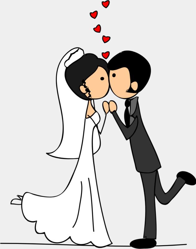 Cartoon Wedding Groom Bride Kiss 3